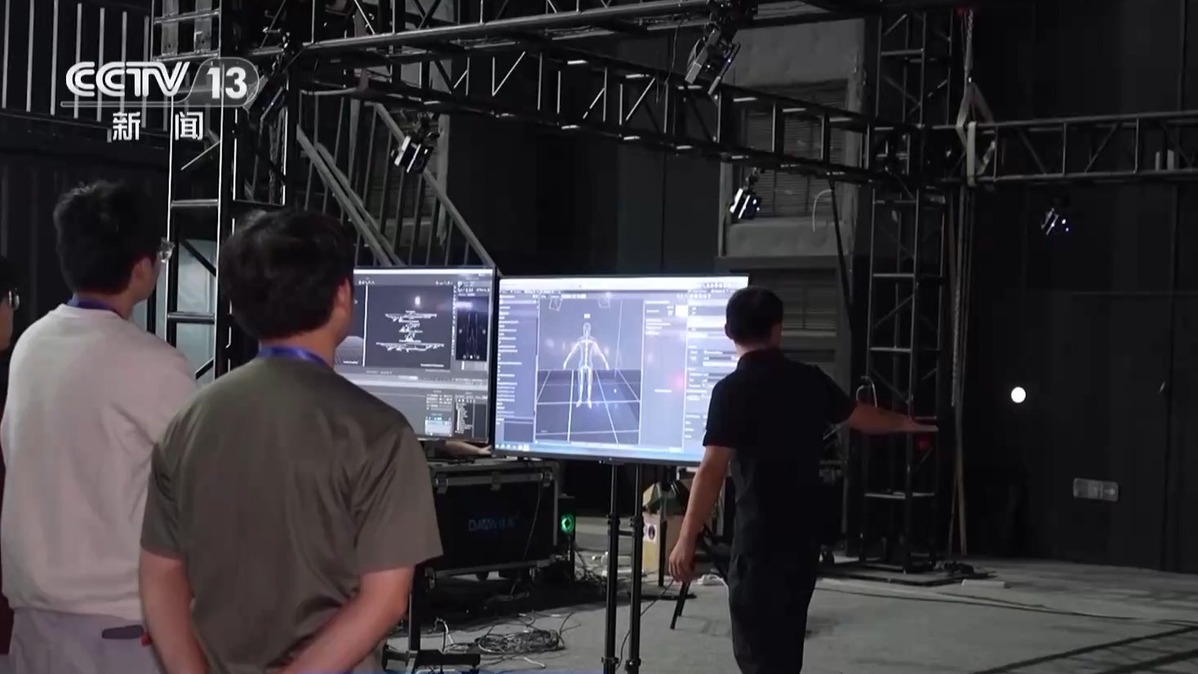 工做人员告诉记者,还能按照需要切换、随时点窜,正正在沉塑片子的成本布局、制做周期和创做分工,还为后期译制带来便利。正在沉庆永川科技片场。